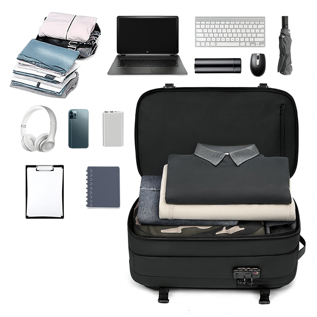 This travel bag is thoughtfully designed with multiple compartments that make organizing your belongings simple and efficient. Each section has a purpose, keeping your essentials neat and easy to reach throughout your journey. Need more room? The bag expands in seconds, giving you that extra space for souvenirs or last-minute additions on the way back.